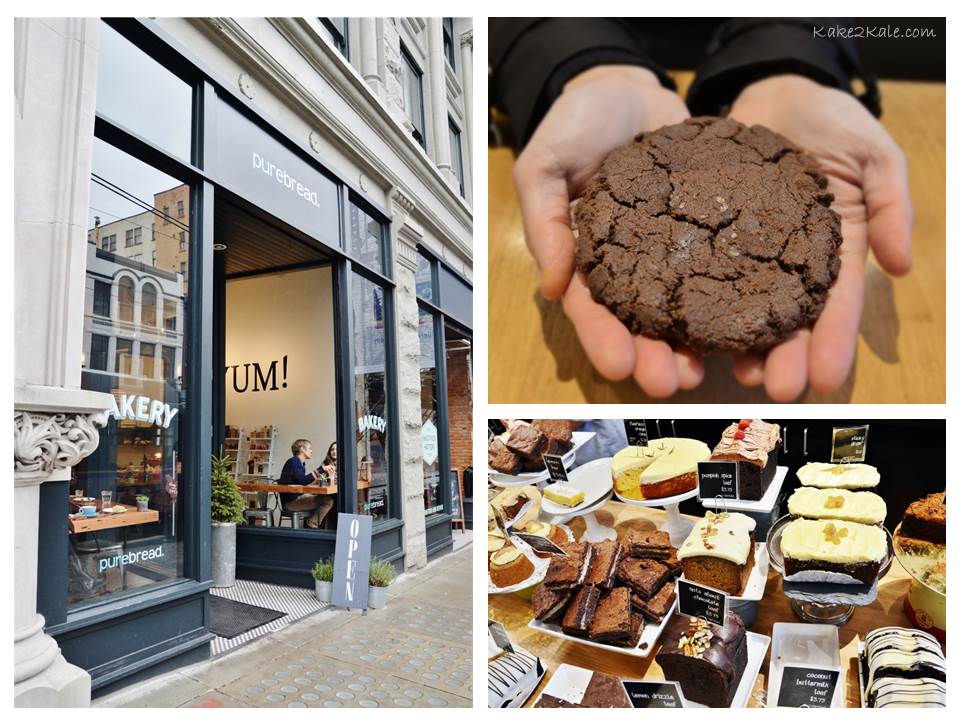 Kale and I first came across Purebread at a farmer’s market. Their stand always attracts lots of attention because of their beautiful and bountiful display of baked goods. Everything looks homey, scrumptious and generously portioned. So we were happy to stumble upon their new permanent bake shop in Gastown. There, we chose the “Adults Only” cookie. It was a dark chocolate cookie with rosemary and sea salt. Oh Boy! We were already full from our three courses, but we could not resist this intriguing combination. It is aptly named as kids would not like it, but thankfully as grown ups, we loved it! The rosemary gave it a really herby, fragrant note, and the sea salt heightened the chocolate flavour. Dark chocolate is high in antioxidants, and magnesium. The rosemary also has a host of antioxidants and anti-inflammatory properties as well. It has been shown to increase blood flow to the head and brain, as well as improving concentration. We could not resist this cookie and to live up to our challenge, we placed it in the bowl of our hands to eat. What a perfect ending to our afternoon. Before we knew it, three and a half hours flew by as Kale and I nibbled, chatted, and snapped photos through Gastown.