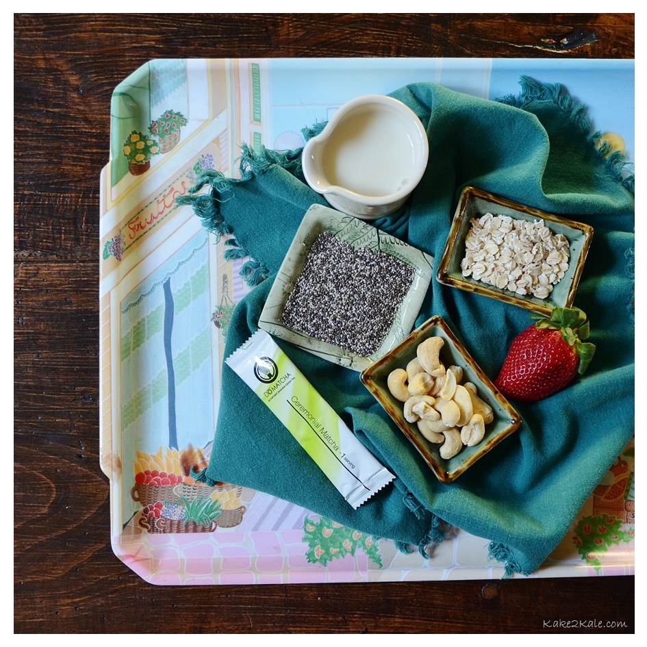 - To get the two toned effect, blend first: strawberries, oats, chia seeds, honey and coconut water.