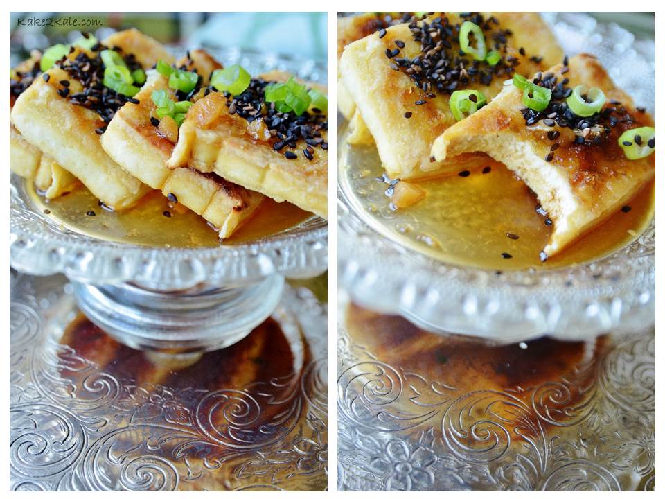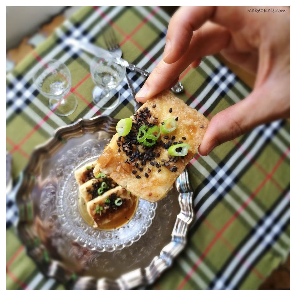 But, one of my favourite tofu dishes are these pan fried tofu dipped in a sauce of mirin-ginger-sesame-orange-soy-honey and topped with black sesame. It is similar to agedashi tofu that is served in Japanese restaurants. My frugal Japanese girlfriend orders this side dish and then orders a bowl of rice and voila, a meal.