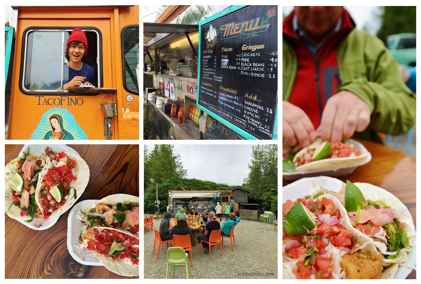 It’s not the sort of food truck you’d ordinarily look at twice. Located off the highway, in the back corner of a gravel parking lot for a hand full of shops, sits the Tacofino truck. The truck looks basic with only a painting of the Virgin de Guadalupe holding a taco. The surroundings are rustic – a couple of long tables with patio chairs. Originally a hangout for surfers and backpackers, this casual food truck has grown into a successful business with an international fan following and restaurants in Victoria and Vancouver. Their popularity owed mostly to their Baja-style fish tacos, which are considered to be the best and tastiest in British Columbia! I agree. The crispy Tempura Ling Cod fish taco (with salsa and chipotle mayo) and the Seared Albacore Tuna Ta-Taco (with ginger and seaweed) are my favourites!